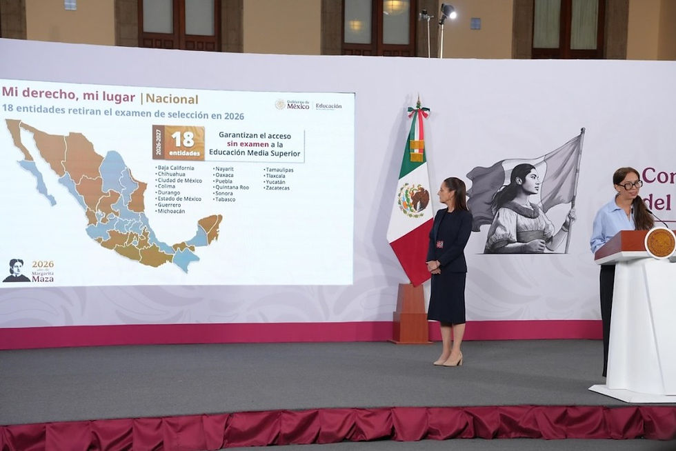 La Presidenta de México, Claudia Sheinbaum Pardo, destacó que, con el objetivo de que las y los jóvenes de 15 a 18 años tengan garantizado el derecho a la educación, se fortalece el nivel Medio Superior, por ello, al cierre del 2026 se crearán 200 mil nuevos lugares, lo que suma a que en el país, son 18 estados en los que ya no se realiza examen para ingresar al bachillerato, luego de que en la Zona Metropolitana del Valle de México (ZMVM) se sustituyó la prueba del Comipems por el programa Mi derecho, mi lugar.